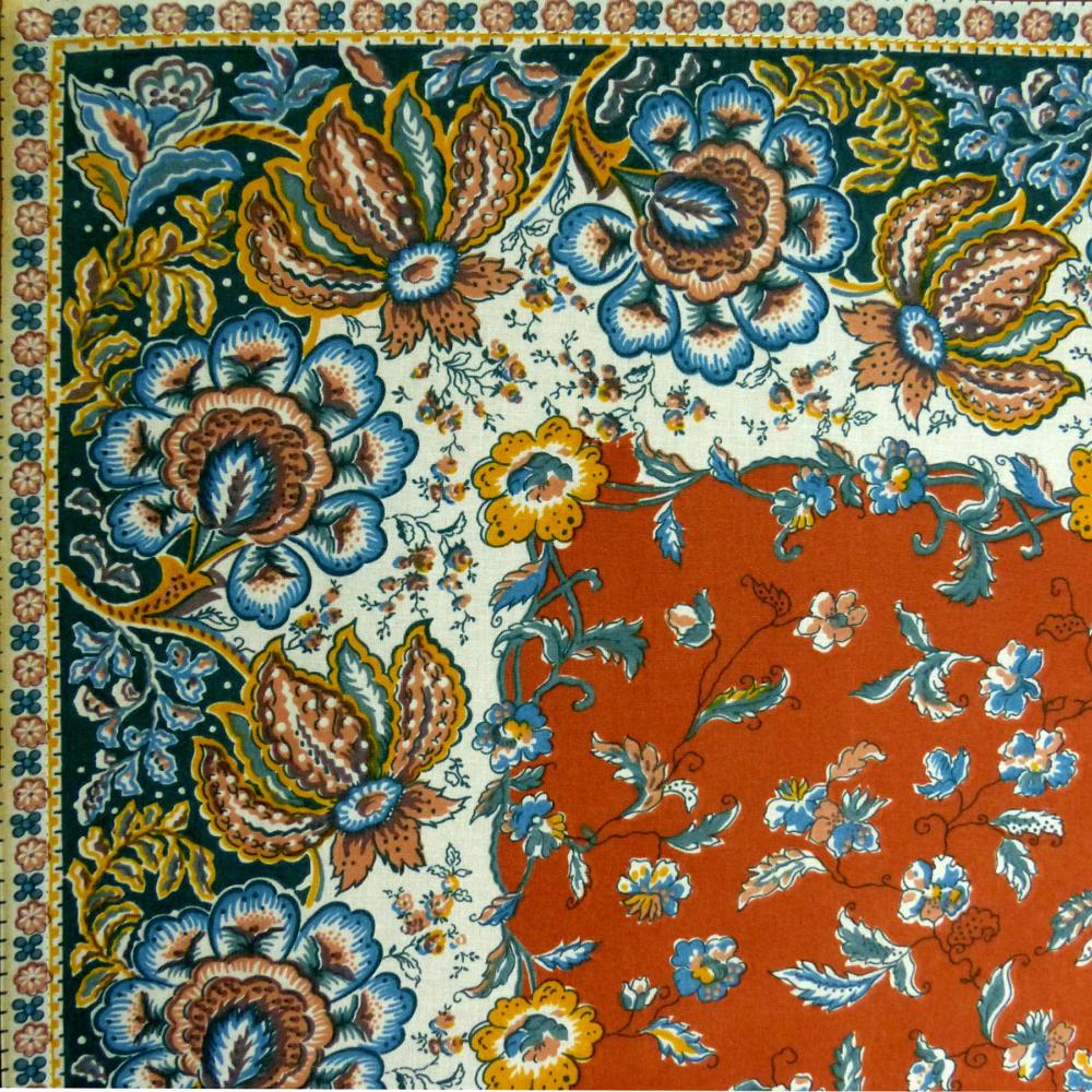 Beautiful Provencal Square Cotton Tablecloth 67"x67" Terracotta "Arles" design.