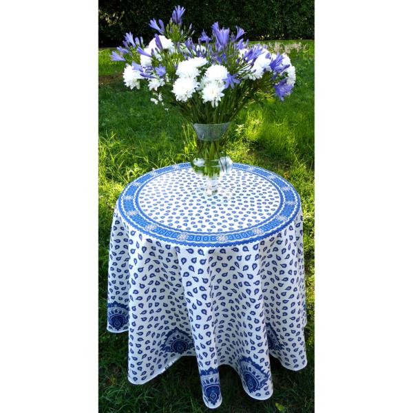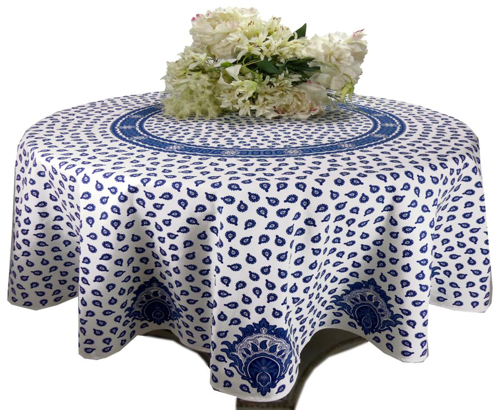 White Round Cotton Tablecloth "Indianaire" pattern made of 100% cotton percale.
